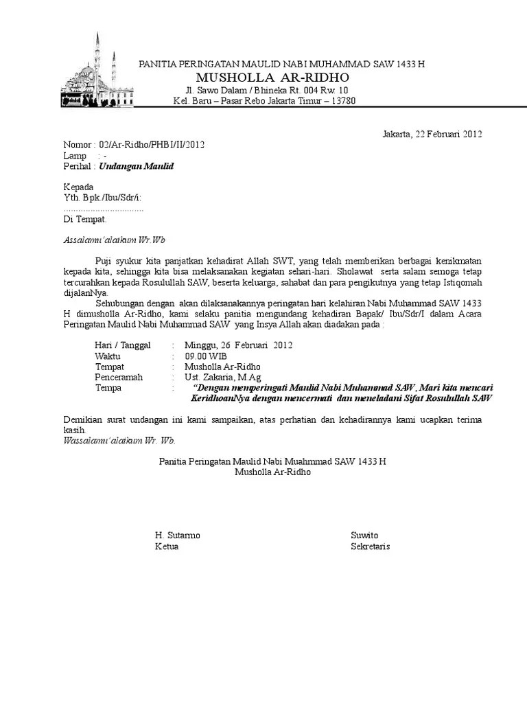 Contoh Surat Undangan Maulid Nabi Dalam Bahasa Sunda - Contoh Surat Undangan Phbi Maulid Doc - Sample Surat Undangan : 1 phone ( 0283 ) 351331 teg…